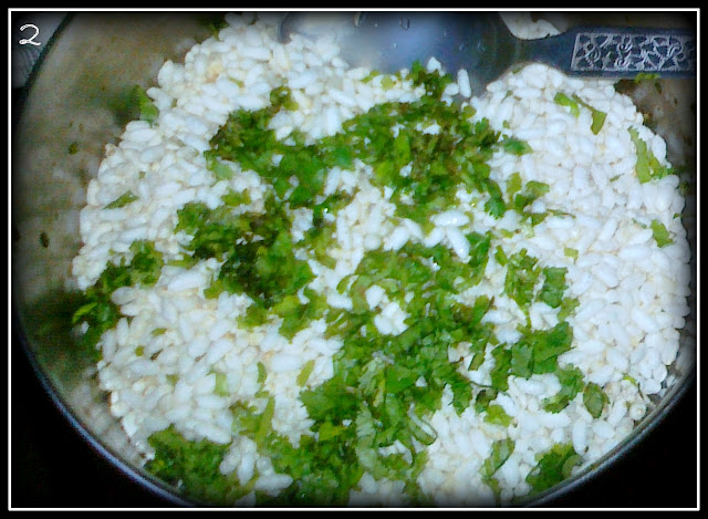 - [Note: Mix the puffed rice at last, see that u have the serving plates ready; so as to avoid softening of puffed rice]