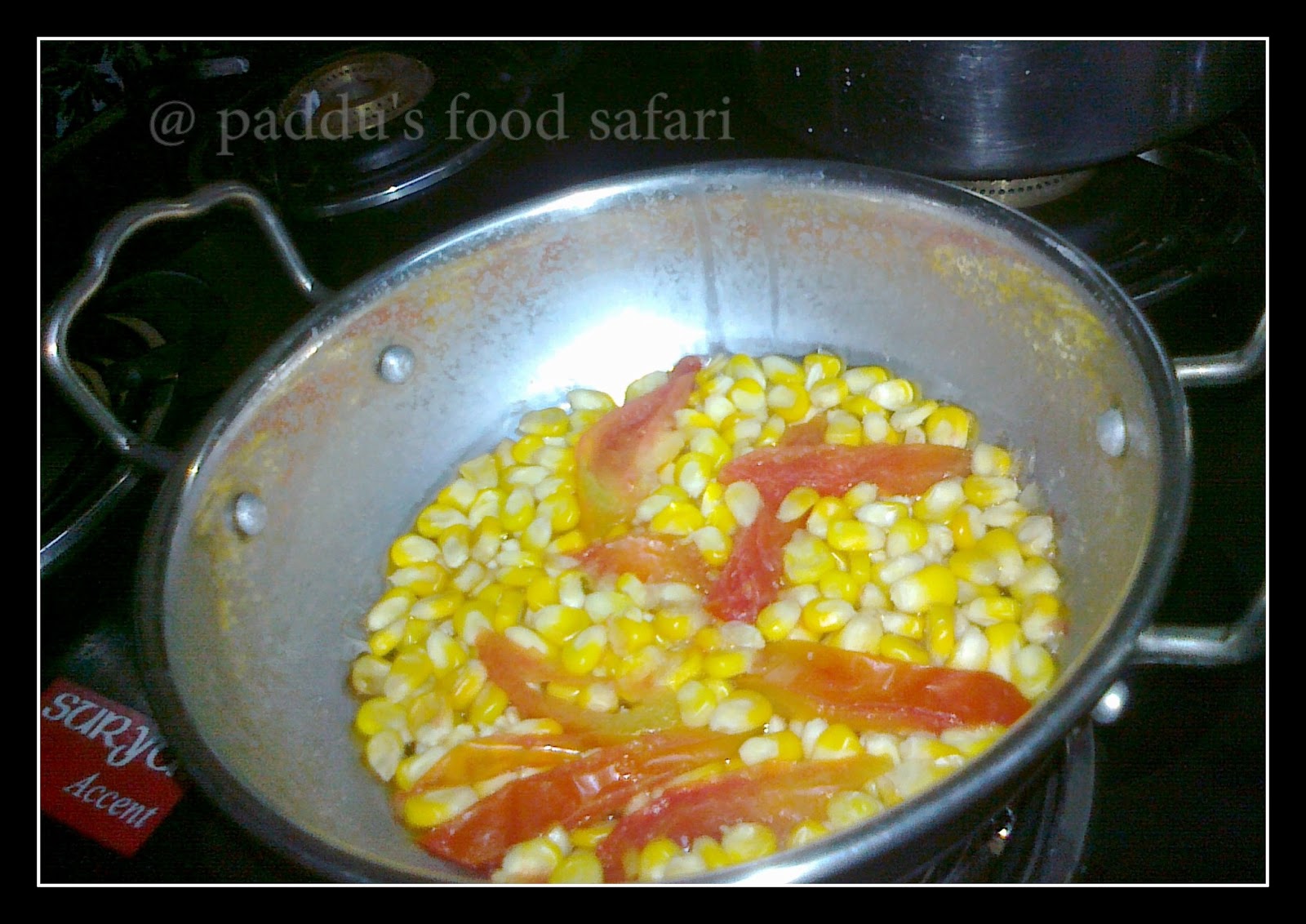 1 medium tomato (half wil be used for cooking along corn and rest half while tossing along vegetables)